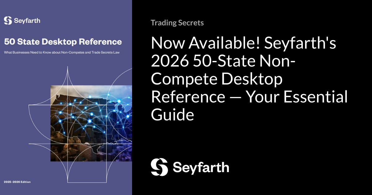 We are pleased to share the 2026 edition of Seyfarth’s 50-State Non-Compete Desktop Reference, a trusted nationwide resource for navigating the complex and increasingly dynamic landscape of non-compete and trade secrets law. What’s Inside This year’s updated edition provides in-depth, jurisdiction-by-jurisdiction analysis of: With continued FTC scrutiny and growing state-level legislative momentum, organizations face increasing complexity... Continue Reading