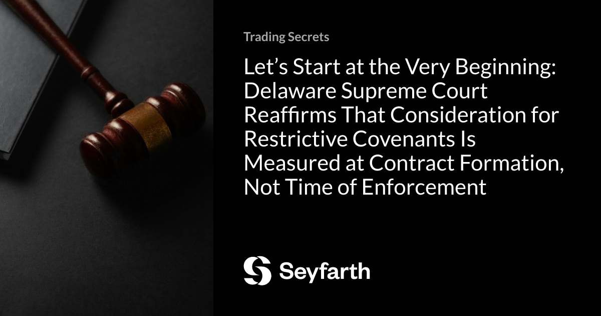 Let’s Start at the Very Beginning: Delaware Supreme Court Reaffirms That Consideration for Restrictive Covenants Is Measured at Contract Formation, Not Time of Enforcement